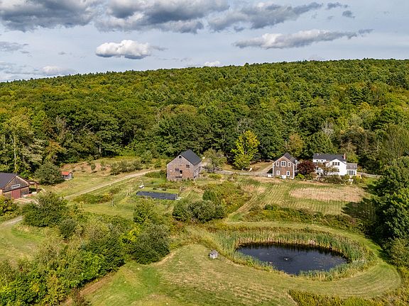 Aerated pondColonial-style farmhouseWesterly mountain viewsCertified-organic farmMonson slate floorsSoapstone countersSwedish morso fireplace insert