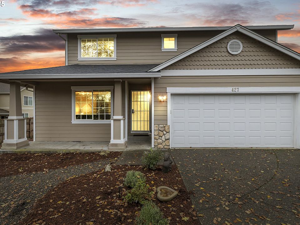 Stylishly updated St. Helens retreat! This inviting home combines modern upgrades with a comfortable, functional layout in a peaceful setting on a quiet dead-end street. The remodeled kitchen features quartz countertops, stainless steel appliances, and a view of the green space that sits just beyond the spacious and fully fenced backyard. The main level offers both a formal living room and an open-concept great room that is tied together by the cozy gas fireplace—ideal for gatherings or quiet evenings at home. Upstairs you will find three generously sized bedrooms, including a primary suite with dual closets and an updated private bath. Major improvements include a new roof (2024), new furnace (2024), and newly added central A/C for year-round comfort and peace of mind. Conveniently located near parks, shops, and local dining, and less than a mile from the St. Helens Marina, this home offers comfort, efficiency, and the best of Pacific Northwest living.