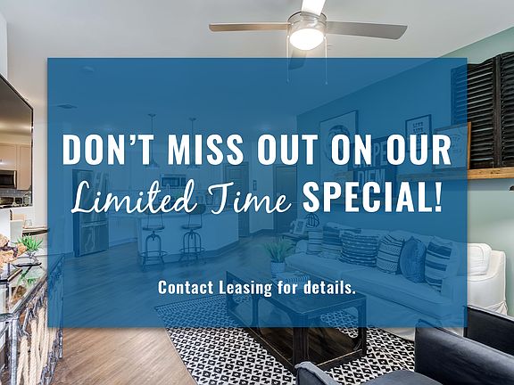 - Special offer! LOOK & LEASE: Receive one month free when you apply within 48 hours of your tour.* *Restrictions apply; offer subject to change at any time. Credit will apply to the second full month's statement. Special excludes all property transfers.
