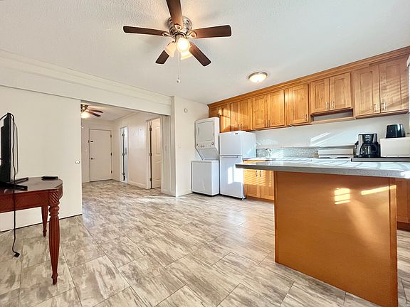 This 1 bedroom apartment is on the 3rd floor, accessible by stairs. Featured are stone countertops, an air conditioner in the bedroom, ceiling fans in the living room & bedroom, a private balcony & walk-in closet. Apartment sized range and refrigerator and a washer & dryer inside the apartment!