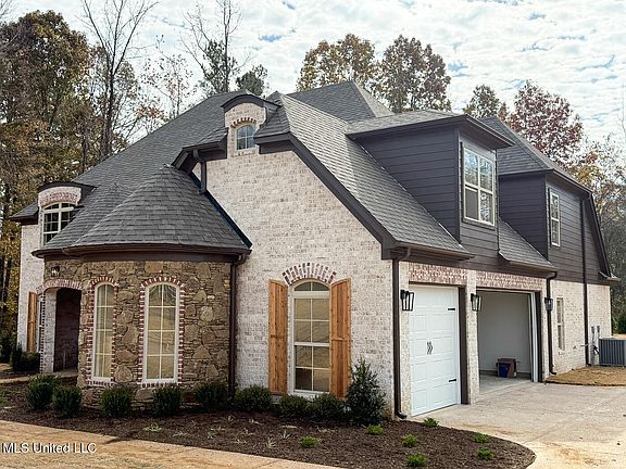 NEW HOME UNDER CONSTRUCTION ~ IMPRESSIVE French Country home on 1.57 acre lot., great location and no city taxes. This plan offers 3,100 s.f. with (5) Bedrooms (including bonus), (3) Baths (One is a Jack-and-Jill) and is a split/open floor plan. On the main level you have the primary bedroom with salon bath, second bedroom, another full bathroom, family room, breakfast room, formal dining, laundry room, HUGE foyer. Upstairs, you have (3) bedrooms (or 2 plus a media room) plus a Jack-and-Jill bathroom. The exterior of the house boasts sophistication with its beautiful, rounded turrets, brick and stone accents. If the curb appeal doesn't get you, the interior will! Home offers a catwalk looking down into the main living area and foyer, plus a custom made, curved staircase, adding an even greater prestigious look! Other interior ''wows'' include walk thru shower, rich granites, wood floorings, bull nose edging, ornate custom ceilings and custom fireplace and with built-ins in the great room. So many unique and beautiful features to this home...it is a must see! The kitchen offers custom cabinets, granite, SS appliances, gas range, double ovens, breakfast bar & room, SS appliances. The Primary Bedroom offers tray ceiling, wood flooring, salon bathroom with ceramic tile, soaker tub, walk through shower, granite/double vanity and large walk-in closet. Other home features include (3) car garage, crown molding, covered patio & front porch, tankless water heaters, wood tread on stairs, wrought iron railing, gutters, security alarm, security lights, and SO MUCH MORE!!! Come customize your home today!! Builders reserve the right to tweak all plans/colors/elevation as builders try to make all homes unique. Photos are of this plan previously built. Est. completion Jan 2026.