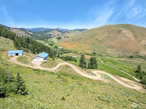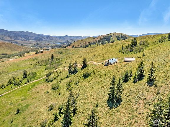 Perched on a bluff with panoramic views, this rare 29+ acre property borders 1,000’s of acres of State land on three sides. Views of snow-capped peaks, upper Rendezvous Valley, shimmering Lake Pearrygin & your own sprawling wildflower-filled meadow, every window is a postcard! Single-story home w/1895 Sq feet offers 3 bedrooms, 1.75 baths, office, & a huge great room/kitchen combo built to capture the views. Attached garage, detached 30 x 48 utility/pole building has tons of space for gear & toys. Two wells ensure reliable water. Create Endless horse options Hiking/biking & snowshoe trails right from your door—explore for hours without ever retracing your steps. Only 5 miles from dwtn Winthrop, yet worlds away in terms of peace & privacy.