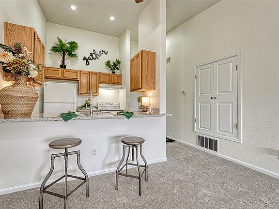 Welcome to this beautifully updated 2 bed, 1 bath condo that blends modern upgrades with unbeatable location! Step inside to find vaulted ceilings that make the living space feel bright and open. You’ll love the fresh interior paint (2025), new carpet (2025), and the sleek new granite counters (2025), new kitchen sink and faucet (2025). The kitchen shines with a new stove (2024) and all appliances included — yes, even the washer and dryer! The family room is right off the kitchen, making entertaining a breeze. Cozy up on the cold Colorado nights with your own gas fireplace. Large bedrooms, both with walk in closets.