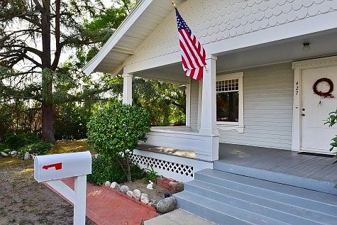 Adorable California bungalow featuring horizontal wood siding, fishscale shingles, tapered posts, high gables, river rock foundation, and a large front porch. Living room focal point is a beautiful river rock fireplace with wood mantle, original multi-paned grid windows, hardwood floors, and built-in bookshelves. Expansive formal dining room with built-in window seat and French doors to front porch. Large country kitchen with wood flooring, ceiling fan, vegetable cooler/pantry and wood cabinetry. Two bedrooms, one with cedar lined closet, and two baths also on the main floor. The extra large attic has been converted into additional living space including wood floors, a living room, sleeping area, and another 1/2 bathroom. Small back patio. Large side yards. Extra wide driveway with detached 2 car garage. Includes additional parcel (8517-008-015) consisting of another 1,282 square foot lot.