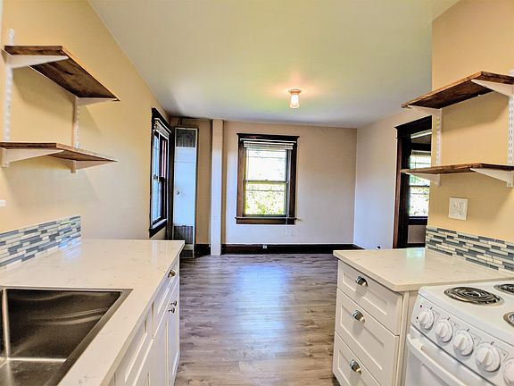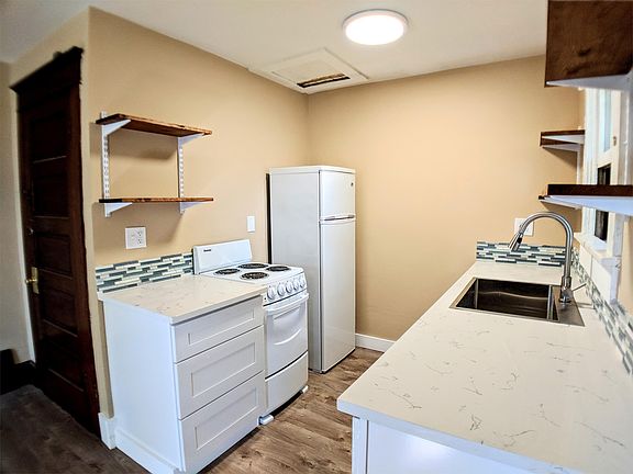 This apartment includes a living room, a bedroom with a closet, kitchen with a refrigerator and range. Newer cabinets and quartz countertops as well as wood laminate flooring installed in the kitchen, living room and bedroom. Across the hallway is your own large bathroom with a newer tub with tile surround, flooring and paint (only one other apartment on that floor with its own bathroom). In addition, there is a full-height locked cabinet for storage in the hallway. To reiterate, the bathroom is not located in the unit, but it is not shared with any other tenants and has a lock with the same key as the unit. The building is weatherized for reduced heating costs and an economical gas heater.
