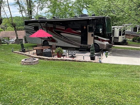 Beautiful Blue Ridge Mts RV Resort Lot. Deeded lot includes a stone wall with fire pit, RV/Motorcoach pad and patio, 30 & 50 Amp electric & (2) 110 outlets, full hook-ups, sewer/water, extra parking pad for golf cart or motorcycle, 10 x 10 storage building, beautiful shade trees. Lovely getaway with convenient access to the Blue Ridge Parkway. Conveniently located between Sparta NC and Galax VA. Resort is lovely with a stocked fishing pond and fountain, stream, heated inground pool, pickleball court, basketball court, miniature golf, horseshoe court, playground, community building(s) with various community events, i.e, bingo, crafts, and 4th of July fireworks. If you are looking for a serene mountain getaway, you will want to visit Saddle Ridge and you will want to make it your home away from home. See AO.