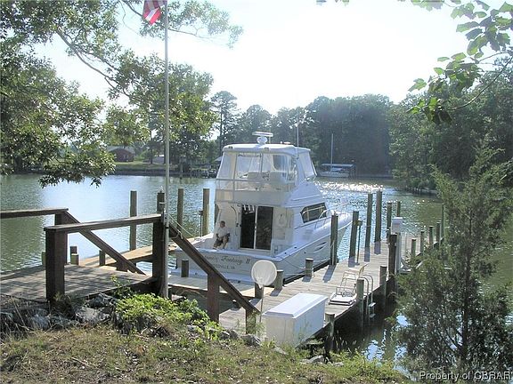 One of a kind 9.7776 acres on Slough Creek off the Little Wicomico River and the Chesapeake Bay in Reedville. 2279 sf, 3 bedrooms, living room, dining room, kitchen, laundry room, family room, rip, rap, two slip dock, electric, water, 2,394 sf metal building with a two bedroom guest cottage built inside, living room, dining area and bath. 19'+ height in the balance of the building for boat or RV storage. attached covered area for boat or RV. Park like setting along the drive into the storage building/cottage and on to the home on the waterfront.