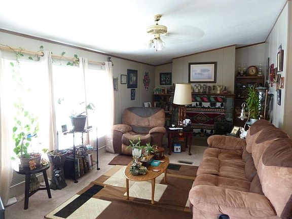 1 acre with 2Br 2Ba mobile home and detached 10x18 storage-workshop. This property features open living rm with wood burning fireplace & split bedrooms. Updates & Upgrades include: new front & back door, new sinks, faucets, ceiling fans & built in stereo sys. Storage-Workshop features underground 220 electric & phone. Work bench in storage bldg stays but cabinets do not convey.