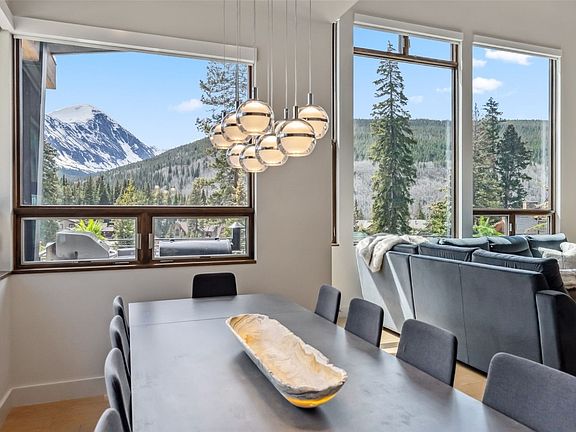 Immerse yourself in this stunning mountain modern retreat. Step into mountain luxury with this breathtaking home, where sleek modern design meets the magnificence of nature. Soaring vaulted ceilings and expansive windows frame awe-inspiring, unobstructed views of Mt. Quandary from nearly every room, flooding the space with natural light year-round. Whether you're entertaining friends on the upper deck or soaking in the hot tub on the lower patio—surrounded by an immaculately manicured lawn and garden with your own stream—this home strikes the perfect balance of ease and elegance. Thoughtfully designed for both comfort and functionality, it features a fenced dog run, a custom dog wash station to pamper your four-legged friends, and an oversized two-car garage with ample storage for all your mountain gear. And the best part? You're just a five-minute drive from downtown Breckenridge.