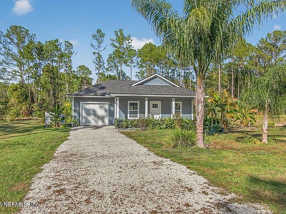 Beautiful almost new home in Fast Growing Area in St Johns County. Enjoy this 3 bedroom 2 bath with a one car garage and all on just shy of an acre of beautiful land in Southern St Johns County. This home boasts an open floor plan with 9 ft ceilings, wood self closing cabinets, granite tops in baths and kitchen, stainless appliances, and back patio. Seller has added many features including: 2 large palm trees, beautiful landscaping and fruit trees, an additional access driveway and culvert, and a water softener. No HOA/CDD -so no rules allows you to have a future large shed for your RV or car work shop in addition to many possibilities and privacy of having a large lot.
