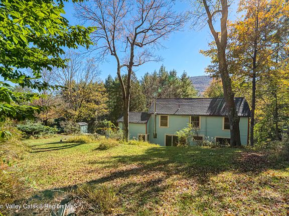 Offering rustic charm with modern amenities, this two-story, move-in ready farmhouse is the perfect balance of country life and nature access with proximity to schools, entertainment, and Woodstock culture. Boasting 10 rooms perfect for hosting guests or family, this beautiful home built circa 1865 has been upgraded with many beautiful aesthetic features including a granite countertop kitchen, new wide plank pine floors and vintage pecan wood floors; exposed beams; a new bluestone patio with total privacy; a wood stove to keep you cozy on cold nights; and a large rocking chair porch. The downstairs has a large open-plan living/dining area and two additional large rooms office space and entertaining. Ascend the unique retro staircase to access four bright bedrooms. the downstairs bathroom is clean and modern, while the upstairs bathroom features a vintage clawfoot tub. The upstairs also has an unfinished storage room and a laundry room. Recent modernizations and improvements include all new windows; energy-efficient, high capacity mini-splits for heating and cooling; a new outdoor shed; full exterior paint; and full wiring for a whole-house stand-by generator. In addition to all this, this rolling two-acre property borders state land that allows access to limitless wooded forest to explore and hike. And if this property was not special enough, unverified local lore holds that this house has deep , classic Woodstock history with famous musicians including Jimi Hendrix having stayed and played there! The gorgeous outdoor space also features a vintage barn in need of total renovation or the footprint can be used to build an entirely new unattached guest house or artist's studio.