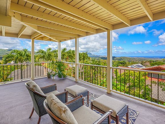 Spacious Home with Panoramic Views on Kauai’s South Shore. This custom 5-bedroom, 4.5-bath multi-level home offers sweeping views of the ocean, mountains, valleys, and hillsides from all three floors. Enjoy stunning South Shore sunrises and flexible living for large families, multi-gen use, hosting guests, or generating rental income.<br><br>Main Level - unescapable views:<br>The heart of the home features a spacious kitchen (with direct entry from the two-car garage), the dining area, and a vaulted-ceiling living room, all oriented to showcase stunning vistas. Several sliding-glass doors open to the large, wraparound lanai, ideal for outdoor enjoyment. This Level also includes a versatile flex room (office, bedroom, workout, etc.), a half bath, a laundry room, and the front door entry.<br><br>Upper Level - Wake up to the sunrise:<br>The primary suite features all the views, vaulted ceilings, a walk-in closet, an en-suite bath with soaking tub and separate shower, and a private lanai. Another bedroom and a full bath complete the upper floor.<br><br>Lower Level - views, covered lanai, level yard space, flexible Living, and rental option:<br>The fully finished lower Level includes two bedrooms, two baths, a living area with a wet bar and lounge space, and another generous, fully covered/shaded lanai. With both interior and exterior access, it’s perfect for guests, kids, extended family, or rental use. Per County guidelines, it may qualify as a legal ADU (buyer to verify). <br><br>Recent $150,000 improvements to the structure, foundation, lanais, and overall refresh are now complete. Priced well below the area’s average price per sq ft, this home offers excellent value.<br><br>Conveniently located between PMRF and Lihue on Kauai’s southwest side, this home blends scenic views, versatile living space, and investment potential.<br><br>The seller is relocating and wants to close quickly. Easy to show. Bring all offers.<br><br>https://player.vimeo.com/video/1122324218