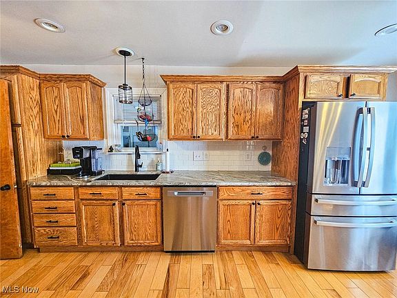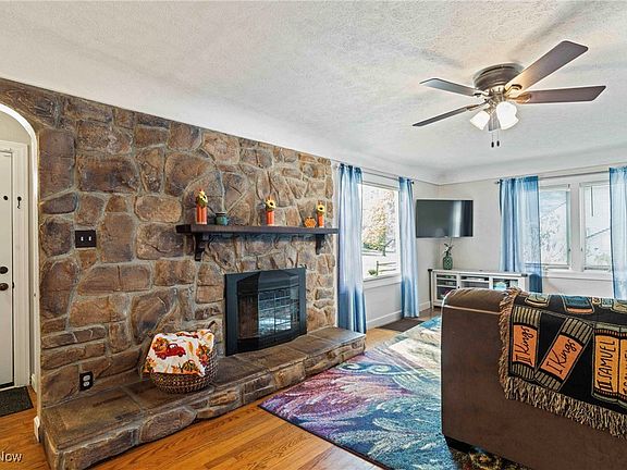 Canfield Schools. This updated Cape Cod has much to offer. Large Living Room with hardwood floors and massive stone gas fireplace. Fantastic, updated kitchen with traditional oak cabinets, granite counter tops and hardwood floors. Edison lighting with built in fan, ceramic tile backsplash and stainless-steel appliances. Double oven, refrigerator 2024 and dishwasher 2022. A “Where did you get” chandelier over the table completes this kitchen. Large 2 tier family room offers entertain area for young and old at the same time! Built in bar for the adults, with built in cabinet with live edge back bar, carpeted area for the children and each with a TV. Step outside to the 12 X 20 covered deck with fan, TV and remote-control sunscreen. The Azek deck with cedar ceiling connects the home with the outside experience. The 2 full bathrooms have been recently remodeled. Main bath with granite and soft close doors/cabinets. The upstairs bath also features granite counter top. The 2 lower bedrooms feature hardwood floors. The carpeted upstairs bedroom and family room are kept comfortable by the new mini-split heating and cooling system. This summer's heat was no problem as a new AC was installed in 2025.