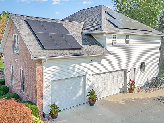 Tucked away on a quiet cul-de-sac in Saginaw Township’s prestigious Prairie Creek Estates, this exceptional home blends timeless elegance with modern convenience. With over 5,700 sqft. of finished living space, it’s designed for both grand entertaining and everyday comfort. Step into a dramatic entryway with cathedral ceilings, granite flooring, and a Swarovski crystal chandelier. French doors lead to the formal dining room, while rich hickory and oak floors flow through the main level, including a spacious living room with cathedral ceiling and spectacular fireplace. The chef’s kitchen impresses with a 6-burner Viking stove, granite and quartz countertops, large island with second sink, cherry cabinetry, spacious pantry, and a breakfast nook overlooking the serene backyard. With 5 bedrooms and 5 bathrooms (3 full, 2 half), there’s room for everyone. The main floor primary suite offers a spa-like retreat with jet tub, tile shower, and in-floor heating. The main-floor front office provides a private space for work or study, and a beautifully appointed walk-out basement with a full second kitchen, family room with fireplace, guest bedroom, and a stunning wine cellar, offers additional living space. Smart home features include Bose and JBL whole-house audio, smart thermostats, garage doors, irrigation, a high-end security system with cameras, and a 10KW generator. Energy efficiency is outstanding in this home, with two new furnaces and A/C units, an oversized water heater, Anderson windows and doors, new roof (2023), and 31 fully paid-for solar panels with transferrable warranty — keeping utility costs low. Outside, enjoy a 3.5-car heated garage with EV charger, lush landscaping, and a private backyard oasis complete with Japanese-style garden, custom pergola, and spacious patio. From smart tech to timeless design, this home checks every box. Schedule your private showing today!