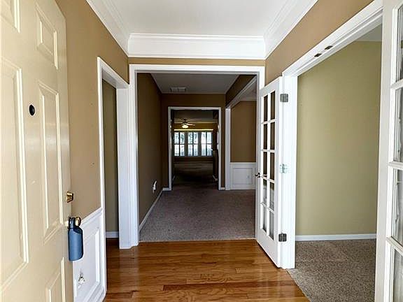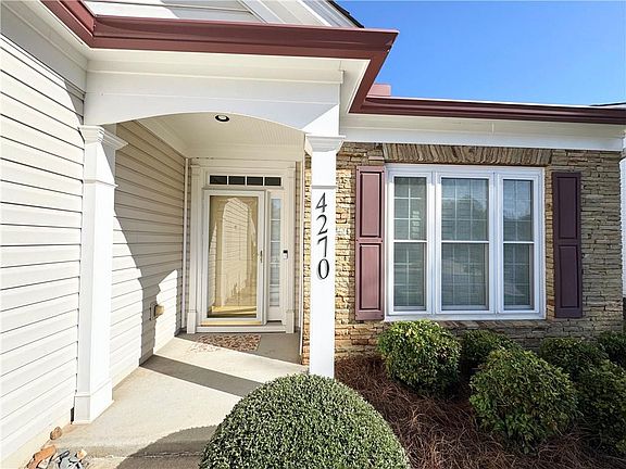 Easy, one-level living with a hardwood foyer, French-door flex room (great for office or exercise room), and a formal dining room with tray ceiling and wainscoting. Kitchen is equipped with granite, breakfast bar, and gas range that opens to the fireside family room with built-ins. Plantation shutters, dedicated laundry with shelving, and a screened porch overlooking the level yard. Spacious primary suite with double vanity, oversized step-in shower, and a huge walk-in closet. Two-car garage with storage. Short, easy walk to the neighborhood courtyard/gazebo. Neutral palette—move in and make it yours. Location perks: minutes to dining and boutiques in Downtown Duluth, shopping at The Forum and along Peachtree Parkway/141, concerts and events at the Gas South District, premier golf and tennis at Atlanta Athletic Club, St Ives, and St Marlo, parks and Chattahoochee River trails, and major medical at Emory Johns Creek and Northside Duluth.