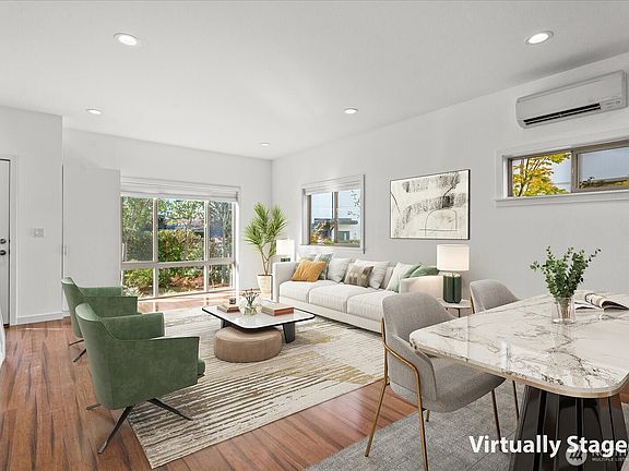 LEAVE THE CAR AT HOME! One short block to the Rainier Beach light-rail station. Perfect affordable starter home in the Greenbelt Station community. Smartly designed 2 bedroom, 1.5 bathroom townhome with modern finishes offer style and comfort. An open floor plan designed for today's lifestyle features hardwood floors, quartz countertops and stainless-steel appliances. Ductless mini-split climate-control units in the bedrooms and living area will keep you COOL in the summer and warm in the winter. The primary bedroom has a walk-in closet and access to a beautiful Jack & Jill bathroom. Dedicated, assigned PARKING SPACE, #6. Storage unit. Shopping close by. Easy access to I-5, downtown and the airport. Schedule your tour today!