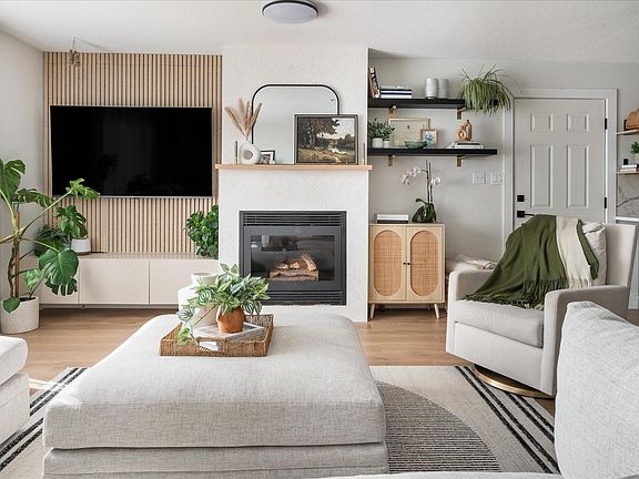 This main-level entry townhome with a spacious garage is a rare find! Renovated by the renowned Refined Collective Studio, this townhome is situated in a quiet complex located in the sought-after Divers Lake neighborhood. The home is just a short stroll to Long Lake, Divers Lake and amenities. Inside, the open layout features wide, accessible hallways, 2 generous bedrooms, and 2 updated bathrooms. Stylish touches include a Venetian plaster fireplace, TV slat wall, built-in dining nook, and office space. As a ground-floor corner unit, it also offers a large laundry/storage room and private outdoor retreat. Updates include white oak engineered hardwood, a designer kitchen with white oak + painted cabinetry, quartz counters, stainless appliances, modern lighting, fresh paint, and refreshed bathrooms. Set in a beautifully landscaped, well-maintained complex, this move-in ready home blends style, comfort, and convenience. Don’t miss it! All data approx. & info to be verified.