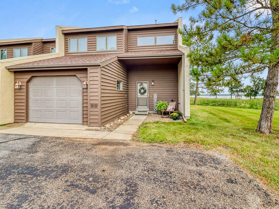 Toad Lake. Year-Round Condo. Only 15 miles East of Detroit Lakes. A condo on the lake is a rare find. This spacious 2-bedroom condo is all about the quiet leisure time you've been looking for. The main level features a bright, inviting living room with gas fireplace that flows into the dining area and out to your private patio overlooking the lake. The views are amazing. The end unit condo opens onto a spacious outdoor area with room for outdoor activities. The kitchen is designed with plenty of cabinetry, perfect for all your cooking and storage needs. Upstairs you will find two generously sized bedrooms with vaulted ceilings, including a primary bedroom with walk in closet and private deck. Attached garage and bonus single detached garage for all the toys. Boat slip on Toad Lake, shared dock, beach area and shared gazebo. Welcome to the lake!