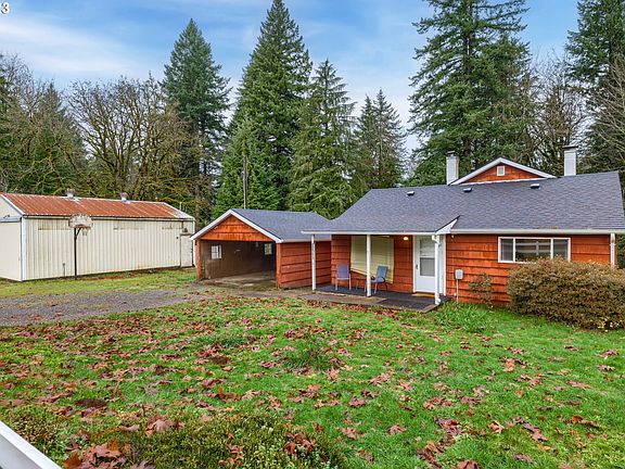 In the quiet neighborhood of Aims out in Corbett, OR hides this cute farm house with a 24' X 32' concrete floor shop (with power) all on a private 7.45 Acres for under $500,000! I know, I can't believe it either... The heated lower level can be used for flex space, workout area or a living area and makes the square footage just over 1500SF. All newer vinyl windows, new roof in 2022 and a brand new septic system in 2021! Existing underground fiber optics to this CFU (forestland) property makes this a perfect blend of privacy and connection/work space. The well onsite feeds 3 properties and a well agreement is in place. There is a newer oil burning furnace with a UST. Certified wood stove warms this 3 bedroom home with bonus area. The functional floor plan and covered front porch complete this property.