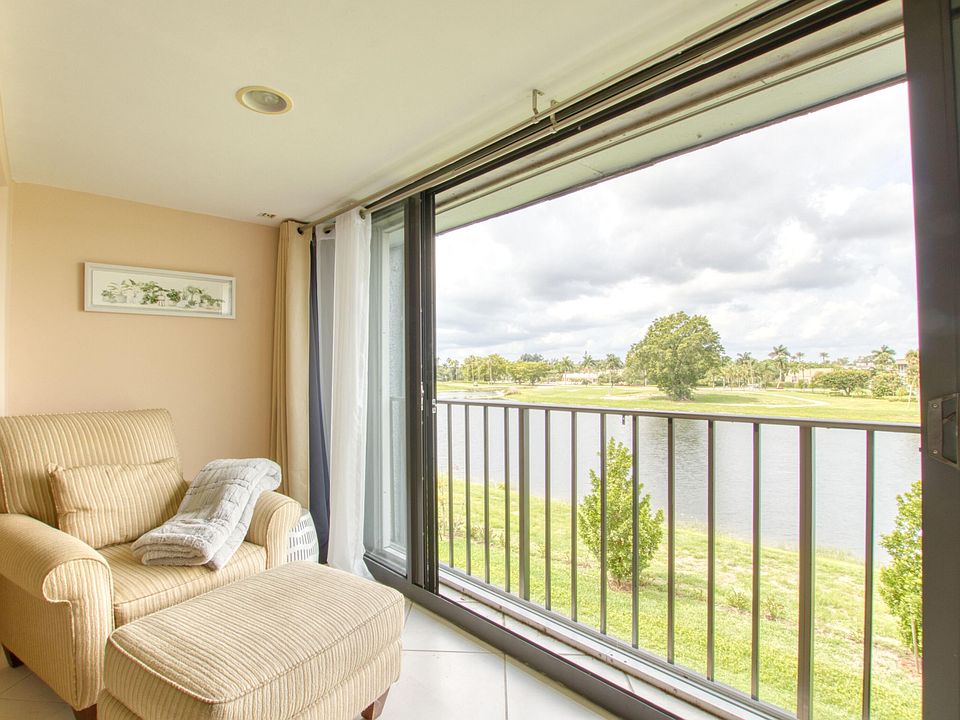 Lovely 2/2 with extended living area and panoramic views of the Lake. Light tiles throughout draws in the natural light and warm ambiance. Enjoy washer/dryer, sit down kitchen, walk in closet, extra storage area, Impact windows in the front and accordion shutters in the back. Tropical swimming pool just out your front door. Experience the peace and ambiance of manned guard gates and 24-hour security patrols all located on lush tropical grounds. This amazing location is minutes away from the Florida Turnpike, I95, great restaurants, activities, shopping. Close by are airports, medical centers, places of worship, Polo Grounds and the beaches.
