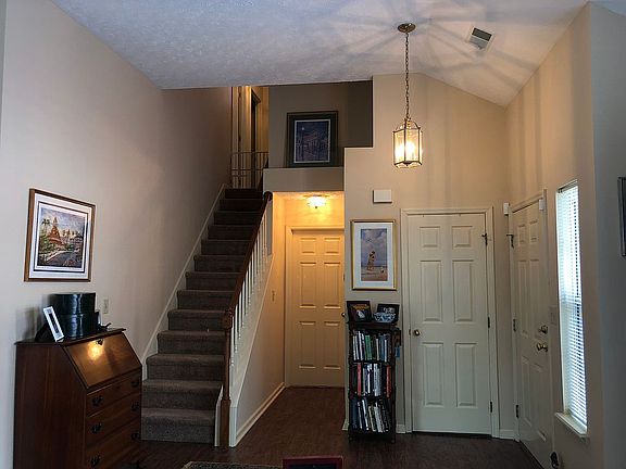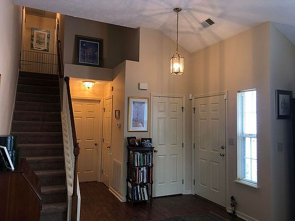 Quiet and tranquil private home in the idyllic English garden community of Wyndham Downs with its white picket fences, mature trees and immaculate landscaping. The 3 BR/2 BA home features a lovely aged brick exterior, 2 car garage and professional landscaping. The first floor features an easily accessible first floor Master Bedroom Suite, with 2 enormous closets, and double height vaulted Foyer with upgraded LVT wood plank flooring. A vaulted Great Room contains a built in fireplace with gas logs, blower and marble surround, a remote controlled fan, and numerous windows. The open kitchen has gorgeous cherry cabinets, and numerous upgrades including: LVT wood plank flooring, Samsung stainless appliances, granite countertops and bar, skylight and separate laundry. The spacious dining area leads to an oversized patio and private fenced yard. Upstairs are two large Bedrooms with walk in closets, window seat, skylight and a bathroom with double vanities. Just steps away from the nature filled Waverly park with walking trail, playground, tennis and basketball courts; and private community pool, tennis and basketball court. This home is truly a treasure. Owner/Agent