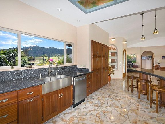 Quality Custom built in 2016 awaits you in the Pikake Subdivision in Lihue Kauai. As you enter thru the solid oak front door you are greeted with spectacular golf course views Single level living in the main residence of over 1,700 sq ft with spacious primary suite, walk in shower experience over looking the golf course . Home office with built in cabinetry. Second bedroom has golf course views and access to private lanai space. Custom cabinetry in kitchen with granite counter-tops and stainless steel appliances with gas range. 3 car garage of over 1,008 square feet with a 500 sq ft. guest home complete with living room, bedroom, kitchenette, and full bathroom" located above the garage Notable features include: 30 inch deep counter tops in Kitchen Sapele Custom Cabinetry in Kitchen Continuous custom tile throughout Custom Double sink alder wood vanity Unique Cement Bamboo Walk in shower Western Red Cedar siding, Heavy shake roof Air Conditioning in all 3 bedrooms Landscaped for easy maintenance Plenty of natural light Walking distance to shopping & restaurants. Only 3.5 Miles to Lihue Airport.
