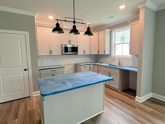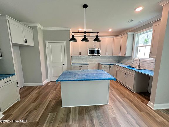 Beautiful one story new construction home sits on a cul de sac lot in the golf course community of Pinehurst in popular Farmville, NC. The home has a large 2 car garage. The kitchen is open to the great room and Dining area , seperated only by a lovely kitchen island. With granite countertops countertops , stainless steel appliances and a large pantry, whats more for the family chef to ask for. The primary bedroom is large with a walk in closet and ensuite bath incuding a large tiles walk in shower. Two other bedrooms with large closets share a lovely guest bath with tub/shower combo. Outback a patio with several large trees , great for shady afternoons bbqing after a round of golf at Farmville Country Club. This home is walking distance from a downtown community known for its arts and culture. In case you are not a walker then a golf cart trip to restaurants and the theatre might be a better fit, and since farmville is golf cart friendly your all set.