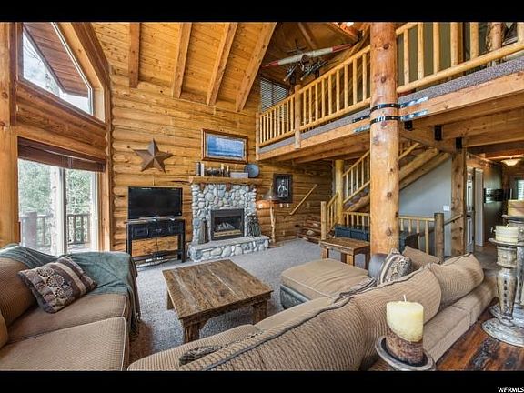 PRIME SNOWMOBILE LOCATION WITH EXCEPTIONAL SOUTH MOUNTAIN VIEWS! This cabin, located on the east side of Timber Lakes, is a Mountain Lodge design and has exceptional views to the South and West from the two story windows! Great proximity to the easement/access for snowmobiling in the Uinta National Forest. Access to multiple beautiful hiking trails. Property backs common ground with pond which attracts wildlife. Cabin has year round access. Cabin sleeps 12 comfortably in beds.