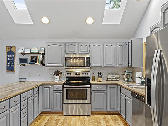 Showings 11/14. This charming home is filled with natural light and features vaulted ceilings & skylights. The main level has an open concept layout creating a welcoming feel. The stylish kitchen boasts tile backsplash, SS appliances, generous counter space, & ample storage. It flows to the dining area & the living room for an easy everyday living. Two bedrooms & a bathroom on the main floor for convenience. Upstairs, the primary suite provides a retreat with a spacious bathroom. Outside, the patio and expansive backyard offer a cozy setting for gatherings or quiet evenings, all while enjoying country side views on your half-acre land. Updates: roof on house + garage, gutters w/ leaf guard, 3 skylights (Apr '25), Washer & Dryer (Jan '24), Water Heater (Jun '23), Water Softener (Aug '22)