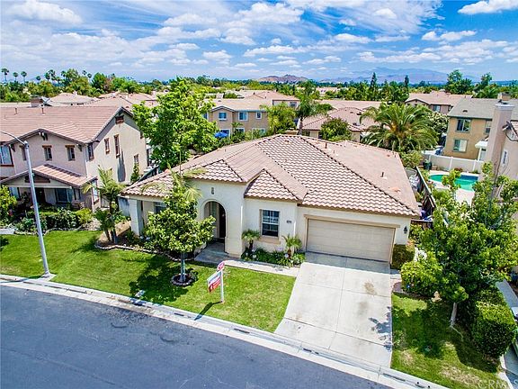 Gorgeous Model Home with an Enormous Yard on a Prime Cul-de-Sac location in the beautiful gated community Riverwalk Montecito! * Home offers 4 bedrooms 3 bathrooms 2-car garage! Kitchen features cherry wood cabinetry, Corian counters & stainless steel appliances along with a large center island, breakfast nook*Built-in tech off Kitchen *Family Room features cozy fireplace *4 Bedrooms with large walk in closets *Your Master suite offers two walk in large closets* Master bath counters have quartz vanity with dual sinks *Crown Molding, Baseboards, Dual Payne Windows*Custom interior & exterior paint, Window Coverings Blinds, Italian porcelain tile* Recessed Lighting*Fire Place*Media Niche * Formal Dining room attached to living room light and airy space with a custom mantel. Enjoy the 9,583 sq ft spacious backyard with large grass area or build your own custom pool* Close to Great Shopping & Dining *Quick Bike Ride to local shops and La Sierra University