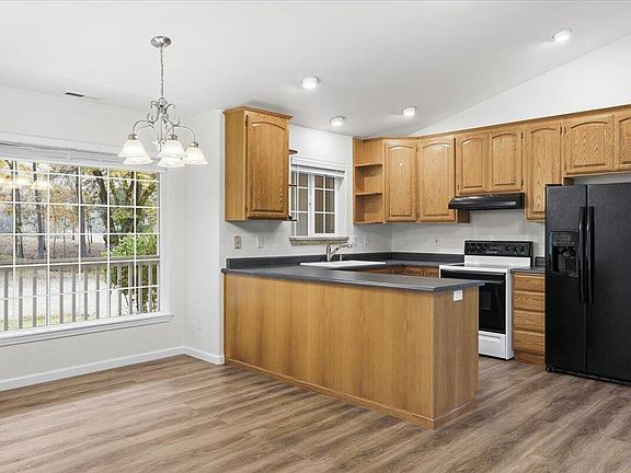 Sink overlooking the yardGenerous counter spaceBright bedroomsSplit-bedroom floor planAbundant level parkingOak cabinetryLvp flooring