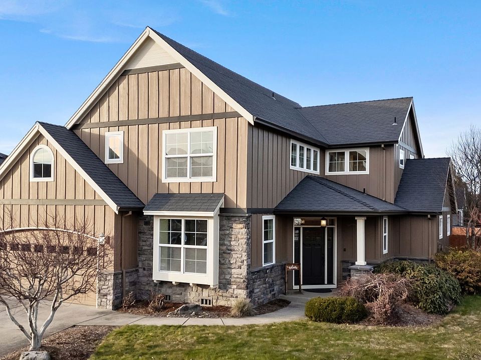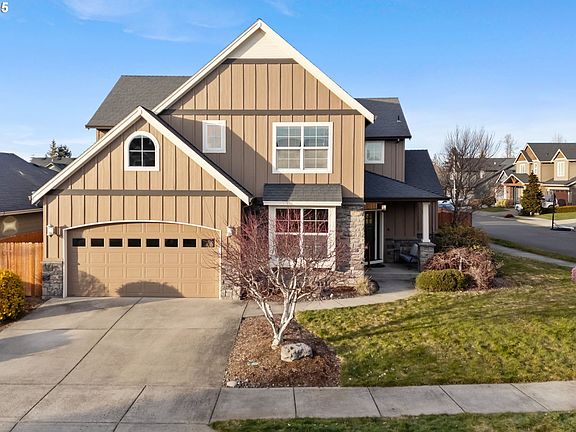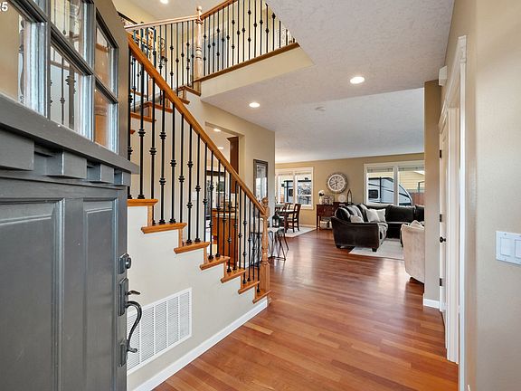 OPEN 2/23 12-3PM. This custom-built Chet Debois home sits pretty on a large corner lot and offers 13x50 RV parking behind the fence, which can also be used for a play court! This one-owner home is in beautiful condition. It has four bedrooms + a main-floor office/den or 5th bedroom. The greatroom floor plan offers gorgeous hardwood flooring and a high open ceiling, connecting perfectly the kitchen, dining, and large living space. The fully equipped kitchen includes all stainless steel appliances, granite countertops, and an eating bar. From there you can step out back to the covered patio w/gas hookup for BBQs. The back is fully fenced and nicely manicured. Upstairs, you will find a nice primary suite with a vaulted ceiling, a walk-in closet, and a beautiful bathroom with a double sink and soaking tub. There are also three additional bedrooms and a full bath. For added convenience, the utility room is also on the upper level! There are so many things to love about this home. The 3-car tandem garage has a great workshop area or flex space. Central AC + Sprinkler system. Make this your next home in the lovely Lenz Terrace neighborhood.