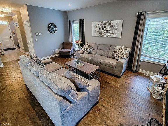 Welcome to this beautifully designed 1,742 sq. ft. detached home, ideally located on a quiet, family-friendly cul-de-sac. Situated on a good-sized corner lot with no side neighbours on the one side, this custom-built 2019 home offers both privacy and charm in a great location. The open-concept main floor features a spacious living area that flows seamlessly into a separate dining space—perfect for family gatherings and entertaining. The eat-in kitchen is a standout, showcasing stainless steel appliances, ample cupboard and counter space, and a large island with breakfast bar. Step outside through the sliding doors to a covered back deck, where you can enjoy outdoor dining or simply relax while overlooking the large backyard complete with a cozy firepit. Upstairs, you’ll find three generous bedrooms, including a primary suite with a walk-in closet and 3-piece ensuite featuring a walk-in shower. The additional 4-piece main bathroom and convenient bedroom-level laundry add comfort and practicality. The full basement provides endless potential for future living space or storage. Additional highlights include a 2-car garage and double driveway offering plenty of parking. Located close to schools, parks, and all major amenities, this home is just a short drive to Clifton Hill, The Falls, and easy highway access—making it an ideal blend of comfort, convenience, and modern living. Move-in ready and perfectly situated—this is the home you’ve been waiting for!