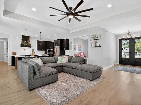 Welcome to this stunning 2022 custom-built home, where thoughtful design and quality craftsmanship shine. Situated on a full acre in the desirable Royal Trails community, this home offers a manicured front with clean landscaping, while the spacious backyard is framed by large mature shade trees that provide privacy and a natural retreat. The entire property is enclosed with black chain-link fencing, and the home is equipped with a well for irrigation plus interior water filtration for everyday living. Inside, the home feels both stylish and inviting. The chef’s kitchen features quartz counters, an expanded bar with seating, and a generous eat-in area overlooking the family room. A custom glass-enclosed electric fireplace creates a warm focal point, while pocket doors open to a flexible space perfect for an office or formal dining. French doors lead to the covered back porch and the tree-lined backyard, ideal for entertaining or relaxing. The split-plan layout includes three bedrooms and a spacious bath with dual sinks and a custom-tiled tub/shower combo. The primary suite is a true retreat, complete with dual vanities, soaking tub, glass-enclosed walk-in shower, and an oversized walk-in closet that flows seamlessly into the laundry room. A convenient half-bath and stairway lead to the second floor, where a versatile flex suite with full bath and walk-in closet offers the perfect media room or private guest retreat. Even the oversized side-entry garage was designed with function in mind, offering extra length, walk-in storage, and a wall-mounted opener to keep ceiling space open. Royal Trails residents enjoy deeded access to Lake Norris for boating, fishing, and kayaking, plus the freedom of a rural setting with room for ATVs and outdoor adventures—all just a short drive to conveniences in Eustis, Mount Dora, and beyond. This home is move-in ready and designed for the lifestyle you’ve been looking for.
