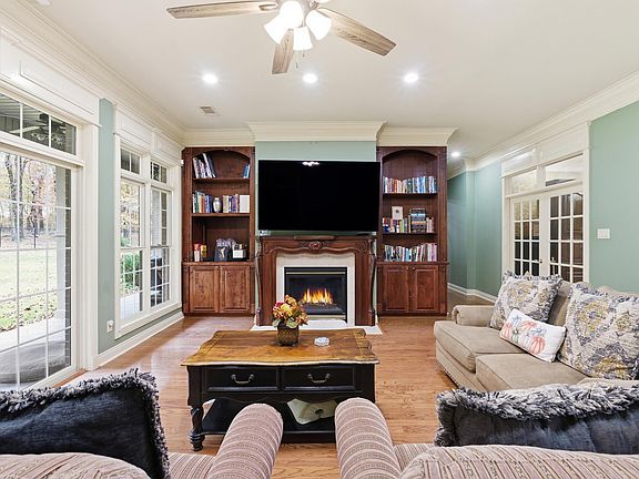 This home sits on 7.47 beautifully landscaped acres and welcomes you with a grand entrance and quality throughout. Real hardwood floors, crown molding, and spacious living areas flow seamlessly. The chef’s kitchen offers top-grain wood cabinets, an island with inset stovetop, warming tray, and a coffee buffet. The stunning primary suite features patio access, dual vanities, two walk-in closets, a large custom-tiled shower, and jetted tub. Upstairs are two guest bedrooms, each with its own bath, plus a large walk-in hobby room. Additional features include a gas fireplace, backup generator, two walk in lit/floored attic storage areas, and a fenced backyard. The 3-car garage has a rubber floor and an in-garage storm shelter. Outside includes a gated entrance, extensive landscaping with irrigation well, 50-amp RV hookup with dump site, and two steel-beam shops—40x50 with electricity, water, and bathroom, and 20x30 with electricity. Agents see remarks for showings.