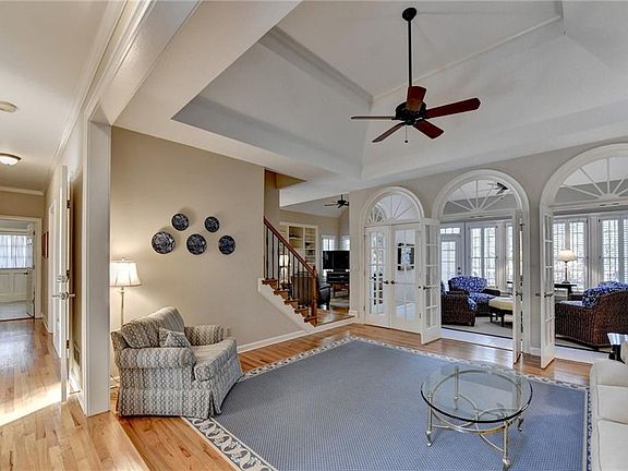 Meticulously maintained by the original owner, this Windward residence blends timeless design with thoughtful modern updates. Oversized arched iron doors with textured glass create a striking and welcoming entry. The primary suite is located on the main level and includes a spacious en-suite bath with a zero-entry shower. A bright, spacious main-level laundry room with custom built-in storage. A sunroom framed by graceful arched doors offers a bright, inviting space for everyday living or entertaining while overlooking the backyard. The updated kitchen is both elegant and functional, featuring glazed cabinetry with designer hardware, glistening stone countertops, a white zellige-style backsplash, a freestanding gas range, a double-door pantry, and a light-filled breakfast nook. Two fireplaces add warmth and character throughout the main living spaces. The finished terrace level opens directly to the level backyard and includes a large office with custom built-in bookcases, creating flexible space for work or recreation. The office/library on the terrace level can easily be converted into a bedroom. The backyard provides room for outdoor living and the potential to add a pool. Conveniently located just minutes from Avalon and downtown Alpharetta, this home offers refined living in one of Windward’s most desirable communities.