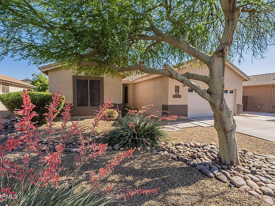 Welcome home to this beautiful, immaculately maintained single-story gem! This 3 bed, 2 bath plus den home is the epitome of move-in ready. You'll love the dream kitchen w/ its stunning granite countertops, stainless steel appliances, breakfast bar & open sight lines to the living & dining areas - perfect for entertaining guests or keeping an eye on little ones. The split floor plan ensures maximum privacy for the large master suite, complete w/ an en suite bath & plenty of closet space. You'll also appreciate the convenience of the over-sized 2-car garage w/ built-in cabinetry for all your storage needs. But the true highlight of this home is the resort-style backyard! Take a dip in your sparkling pool, soak up the sun on the spacious pool deck, or gather w/ friends & family for a ...... delicious BBQ under the covered patio. The Arizona outdoor lifestyle is calling!