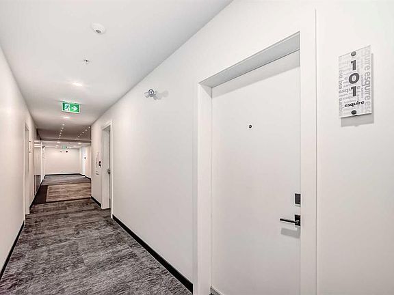 Welcome to the "Esquire" in Calgary’s vibrant University District, just steps from U of C, Market Mall, Foothills Hospital, and C-Train access. This stylish one-bedroom condo offers both modern finishes and unbeatable convenience, perfect for students, professionals, or downsizers alike. Inside, you’ll find a bright open layout with a pearl-white palette, Quartz counters, soft-close cabinetry, luxury vinyl plank flooring, and in-suite laundry. The kitchen is thoughtfully designed with a roomy island, upgraded appliances including a gas stove, garburator, Silgranit sink, and elegant fixtures. The primary bedroom includes a walk-in closet, while the living room opens directly onto your private patio—complete with a gas BBQ hookup. Being on the main floor makes it ideal for pet owners, offering both comfort and easy outdoor access. As an end unit, you’ll enjoy extra privacy and a quiet setting, enhancing the home’s peaceful feel. The Esquire also includes a wealth of amenities: heated underground parking, storage locker, bike storage, fitness center, pet spa, and even a bike workshop. This is a fantastic opportunity to live in one of Calgary’s most sought-after, walkable communities with shopping, dining, parks, and pathways right at your doorstep.