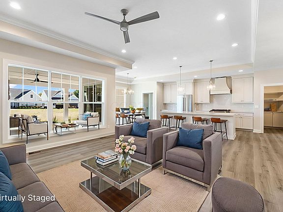 This floor plan in offers a seamless blend of comfort and elegance, designed with modern living in mind. This stunning home features a spacious 2-car garage and a thoughtfully designed layout with 3 bedrooms—two on the main floor for easy access and one in the lower level, perfect for added privacy. There is ample space for relaxation and convenience. The open living area is a true highlight, creating an inviting space for both everyday living and entertaining. The sizable covered patio provides a perfect spot to enjoy outdoor living, rain or shine. Inside, the home is enhanced by exquisite finishes and custom features, reflecting the attention to detail that sets this floor plan apart. Whether you're seeking a peaceful retreat or a space for gathering with loved ones, this floor plan is designed to meet all your needs.