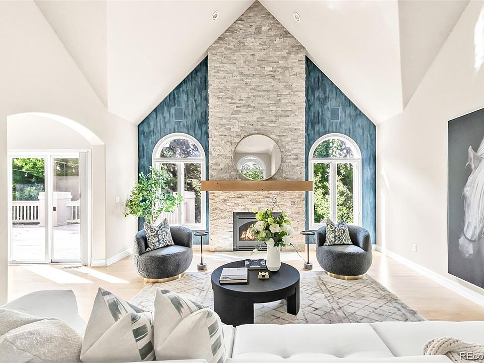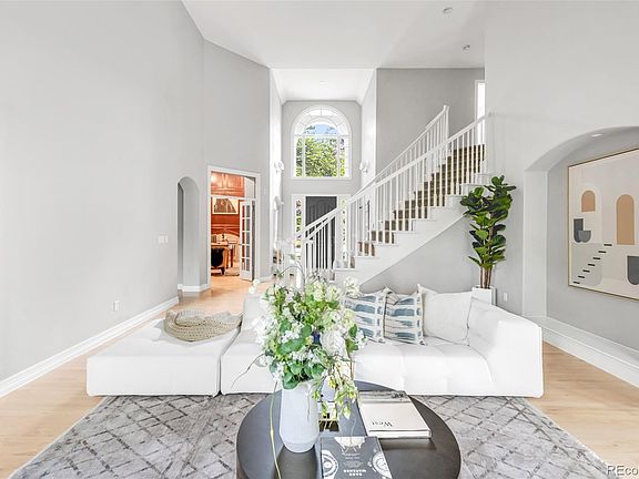 A light-filled and updated retreat awaits in this sprawling home within The Greens at Pinehurst, a coveted golf cart community. Mature trees envelop the property, creating a treehouse-like ambiance throughout. Inside, a soaring double-height entryway opens to a vaulted office with built-in storage and a formal dining room framed by bay windows. The towering great room seamlessly connects to an open-concept living, dining, and kitchen area—complete with a massive center island, sleek cabinetry, and high-end appliances. Conveniently located on the main floor, the luxe primary suite boasts a deep corner soaking tub and walk-in shower. Two large bedrooms with ensuite bathrooms and walking closets. The newly renovated basement is designed for entertaining, featuring a wet bar, theater room with an acoustically transparent screen, and walk-out access to a backyard haven. With lush landscaping, a spacious balcony, and a verdant lawn that doubles as a sledding hill in the winter, the outdoor spaces are truly an oasis. This tight-knit community enriches daily life with a vibrant calendar of events, convenient access to top-rated schools—including Colorado Academy, Denver Christian, and Mullen—and the ease of being just a golf cart ride from Pinehurst Country Club, making this home a rare offering in one of Denver’s most coveted neighborhoods.