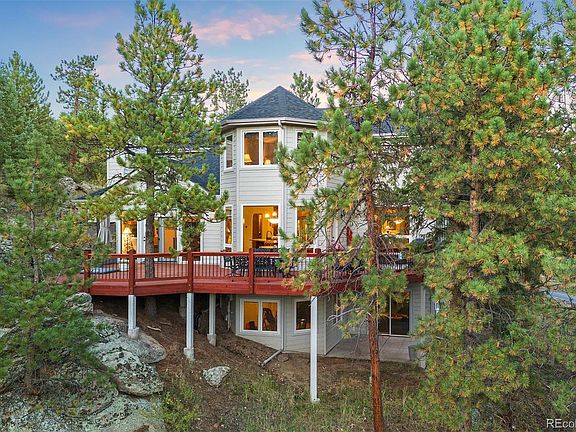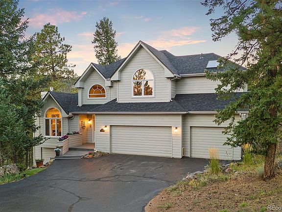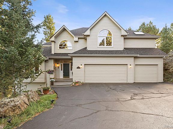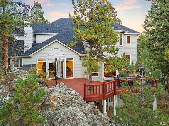 An Artist’s Canvas - Tucked near the back of the hidden Troutdale neighborhood, amidst the serene landscapes of Evergreen, this meticulously designed home offers an invitation to experience luxury wrapped in the comfort of mountain architecture. This residence features an impressive 4,264 square feet of living space, accentuated by four bedrooms and four well-appointed bathrooms. The location can’t be beat – walk to Dedisse Park and Evergreen Lake! From the moment you step through the dramatic entryway, with its commanding sweeping staircase, you are enveloped in an ambiance of tasteful elegance. For formal occasions, the living area, graced with a gas fireplace, and the dining room, boasting an enormous picture window that perfectly captures breathtaking views, set an exquisite stage for entertaining guests. The great room, with its robust wood-burning fireplace, rustic stone surround and door to the back deck, promises countless nights of heartwarming gatherings. Culinary enthusiasts will delight in the kitchen, where leathered granite countertops and knotty alder cabinets pair beautifully to inspire your gourmet adventures. The artistic sensibility of the homeowners shines throughout, with a crafted environment that celebrates natural light and exquisite outdoor living spaces. Don’t miss the professional artist studio that could also be used as a third bay in the garage (already framed to do so), workshop, office or home gym. The abundant deck space, complete with an automatic retractable awning, invites you to savor al fresco moments with exquisite sunsets amidst the gorgeous rock outcroppings that define tranquility and privacy. An epitome of mountain chic, this house is not just a residence, but a canvas of artistry and comfort, waiting to complement your exceptional lifestyle.
