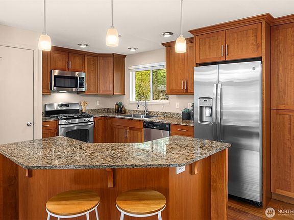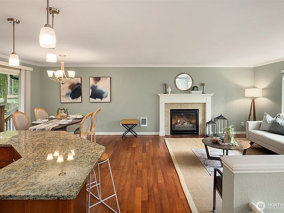 This newly remodeled Wilderness Rim home features an open-concept kitchen, upgraded bathrooms, hand-scraped oak hardwoods and brand-new vinyl plank flooring. Trex deck off the kitchen is perfect for entertaining and enjoying the mountain and territorial views. The large cul-de-sac lot has RV parking with power, southern exposure for gardening, play areas and room for relaxing outdoors. Community perks include stocked trout fishing at Brewster Lake, community trails, Cascade Park and playground and annual events. Just moments away from Rattlesnake Trailhead and Snoqualmie Valley Trail. Schools, downtown North Bend, and I-90 are all within a 10-minute drive, making this fine home a perfect balance of modern comfort and outdoor adventure.