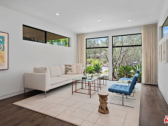 Architectural home expertly crafted by AIH Development, this stunning single-story, 3-bedroom, 2-bath residence perfectly embodies modern California living with its open-concept design and thoughtful details throughout. Enter through a covered walkway framed by mature olive trees to be greeted by soaring vaulted ceilings, walls of glass, and clerestory windows that flood the space with natural light. The formal living room, overlooking a private front yard, flows seamlessly into a sophisticated dining area highlighted by a striking chandelier. The chef's kitchen is a showstopper, featuring custom Italian cabinetry, Calcutta gold marble herringbone tile, Bosch stainless steel appliances, and a large center island with breakfast bar. It opens onto an expansive family room, perfect for entertaining. Oversize sliding glass doors create an effortless indoor-outdoor connection, leading to a sun-drenched patio ideal for al fresco dining, a lush grassy yard, and a cozy firepit lounge. The serene primary suite offers custom solid walnut built-ins and Danish pendant lights, a spa-inspired bath with a soaking tub, walk-in shower, floating walnut vanity with dual sinks, and a spacious walk-in closet. Additional highlights include smoked oak wood floors, a walk-in pantry, interior laundry, updated central HVAC, custom LED lighting, alarm system, electric car charger, fire sprinklers, and both a covered carport and garage with direct access. Located moments from top-rated schools, local shops and restaurants, and all that the Westside has to offer, this architectural gem is the perfect blend of luxury and lifestyle.