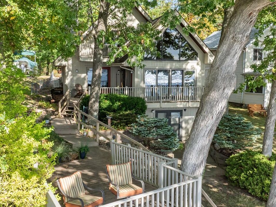Discover a Rare Opportunity to enjoy a sense of Privacy & Seclusion on the highly sought-after shores of All-Sports DEVILS LAKE! This inviting 3-bedroom, 2.5-bath home offers over 2,450 sq/ft of comfortable living space, complemented by picturesque views that define the property's serene atmosphere. The main floor welcomes you with an open-concept kitchen & living space positioned to capture stunning sunsets year-round, an ensuite bedroom & convenient 1st-floor laundry. Upstairs, two generously sized bedrooms with impressive closet space and a full bath provide plenty of room for family or guests. The spacious walkout basement expands possibilities, ideal for additional living/office space, a workshop & abundant storage. Additional highlights include an attached 2.5-car garage, a whole-house generator and extensive attic storage. This well-built home is a remarkable opportunity to create the lakeside retreat you've always envisioned! Contact the REALTOR today for your private tour!