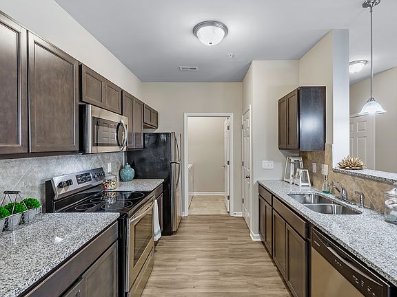 - Exterior features: 9-Foot Ceilings, Built-In Desk*, Business Center, Dog Washing Stations, Garages/Storage Available, Granite Kitchen Countertops, Hardwood-Inspired Flooring, Lawn, Pet Park, Starbucks Barista Station & On-Site Retail, Studio, One-, Two- & Three-Bedroom Homes, Tile Backsplash