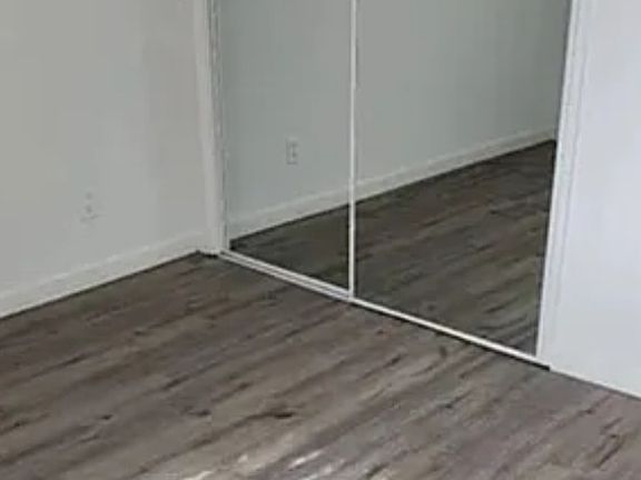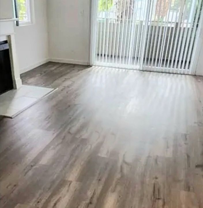 Features lovely Laminate wood floors in the living room, dining area and bedrooms. Porceline tile floors in the kitchen and bathrooms. Full size bathtubs with elevated shower heads and glass slider doors. . Granite countertops and beautiful soft-close cabinets in the kitchen and bathrooms. Master bedroom has a giant full wall closet with mirror sliding doors. Gas fireplace, Stainless Steel refrigerator, stove, microwave and a dishwasher. Verticle blinds, Ceiling fan, Air-Conditioning and a very large wrap-around balcony.
