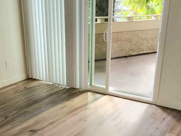 Features lovely Laminet wood floors in the living room, dining area and bedrooms. Porceline tile floors in the kitchen and bathrooms. Full size bathtubs with elevated shower heads and glass slider doors. . Granite countertops and beautiful soft-close cabinets in the kitchen and bathrooms. Master bedroom has a giant full wall closet with mirror sliding doors. Gas fireplace, Stainless Steel refrigerator, stove, microwave and a dishwasher. Verticle blinds, Ceiling fan, Air-Conditioning and a very large wrap-around balcony.