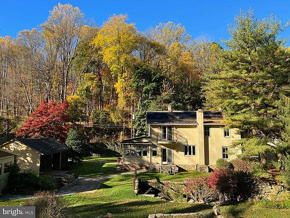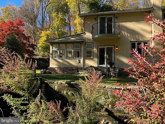 Stately, European-feel home with guest cottage and garage, nestled on 2.2 acres next to a sparkling stream and rising wooded vista, combines a lovely c.1887 structure with thoughtful additions that optimize the light, flow and functionality of the home, and showcase the natural beauty of the property in every season. Located in coveted Charlestown Township/Great Valley School District, with super convenient access to the Malvern entrance to the PA Turnpike (1.3 miles), vibrant downtown Phoenixville and Kimberton Village (3 miles), regional rail and AmTrak train lines to Phila, NYC and DC ( 4.7 miles), this unique property is also mere blocks from Great Valley Nature Center, local walking trails and 5 miles to Valley Forge National Park. The magic of this enchanting property is revealed behind a tall privacy wall, with curving flagstone pathways and stone walls, antique millstones, intentional exterior lighting and lovely outdoor rooms and spaces.......Inside, the gracious floorplan of the main home unfolds from the formal entry hall, with vaulted ceiling and a pleasing home office to the immediate left, featuring radiant heated floors, custom built-ins and a wall of windows with views of the majestic Maple tree in the entry courtyard. The 22' x 15' family room, to the right, is gloriously sunlit, wide open to the kitchen, with radiant heated floors and wraparound views of the property, stream and wooded vista beyond. The highly functional kitchen features a family-sized peninsula, custom cabinets, radiant heated floors and a brand new dishwasher and kitchen faucet. A pair of kitchen-side sliders provide easy access to the lovely stream and terraced backyard with patio / grilling space, firepit area, hiking on the wooded hill and stream-side guest cottage (more on that later!). The main level also includes an expansive 27' x 17' living room, with custom built-ins, gorgeous stone hearth, wood burning stove and hardwood flooring under the wool carpet. Access the stream-side formal dining room - an ideal venue for holiday dinners and celebrations - from either the kitchen or the living room. Finishing out the main level - a well-positioned powder room with laundry facilities, also just off of the entry hall, along with two roomy coat closets, all of which have radiant heated floors.... Upstairs, a skylight-lit hallway leads to the generous primary suite, with French doors that access a lovely Juliet balcony that brings in the soothing sounds of the stream! The primary suite provides ample space for a king-sized bed, and includes large in-room closets, along with an en-suite bath with private WC and walk-in closet / dressing room, all with radiant heated floors. Two additional, well- proportioned bedrooms on this level share a full bath, with tub and shower combo and radiant heated floors; bedroom three also includes access to two bonus rooms on the third floor with myriad uses - play space, crafting space, home school space....The adorable sun-filled "Streamside Cottage", renovated in 2019, includes a full bath, sleeping loft that will accommodate a king sized mattress, granite counters, gas range, fridge, washer / dryer combo, mini split for heating and cooling and incredible views of the stream! The cottage is also an ideal location for staging outdoor gatherings and setting up the bar! The property also includes an oversized one car garage with separate storage closet that could easily be converted to a two car garage. A five-car parking area can be conveniently accessed from both State Rd. and Union Hill Rd.....If you're looking to connect with nature while also being close to shopping, culture and opportunities for entertainment, this property holds it all! Lovingly cultivated in single ownership over the last 47 years, this is a truly special place that beckons its next lucky steward.