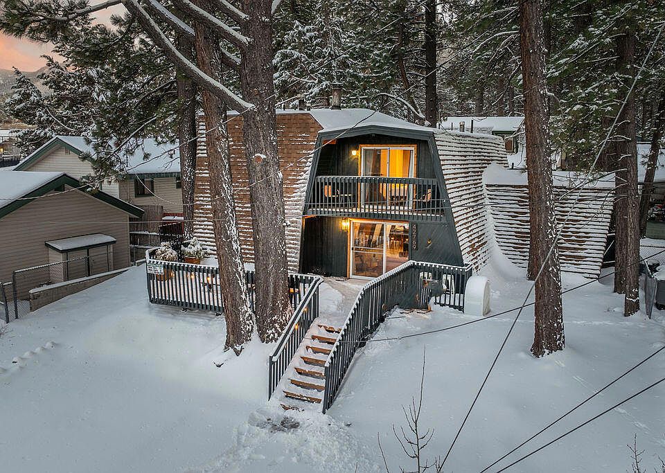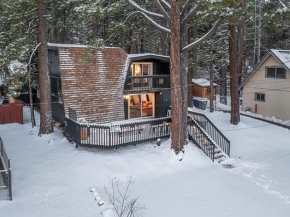 Turnkey, completely renovated, 2,189 square foot, 5 bedroom, 4 bathroom modern luxury cabin nestled in the heart of Moonridge. Ski and snowboard enthusiasts rejoice in this premium location just minutes from Bear Mountain and Snow Summit Resorts. Just a short distance to the rapidly developing Moonridge Corridor. This home is in a premium location, accessible to entertainment, dining, and shopping all year round. Less than 5 minutes away, you can enjoy the proximity to Big Bear Marina, grocery and convenience stores, parks, and picturesque hike/bike trails. This professionally designed home invites you to experience sheer luxury and comfort, with a private wooded backyard featuring a soothing hot tub and fire pit with seating for 8, perfect for unwinding under the starlit skies or the ambiance of warm string lights amongst the trees. A fully stocked game room and arcade with a foosball table beckon lively evenings with friends and family. A chef's kitchen includes GE premium Cafe appliances and luxury finishes. Extra-large living room with an incredible custom fireplace, available with genuine leather sofas, a record player, and a 55'' 4K TV with Apple TV, ensures every moment is one of leisure and entertainment. Retreat to two king-size bedrooms, two queen-size bedrooms, or a versatile bunk bedroom/game room- each space is meticulously crafted for comfort. Laundry area equipped with a newer Samsung front-loading washer and dryer. Newly painted interior and exterior, brand-new furnace, two new water heaters. Beyond its allure as a second home, this property holds the advantage for those seeking a short-term rental, offering an enticing investment opportunity.