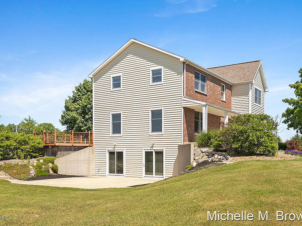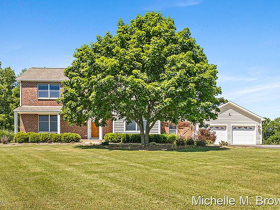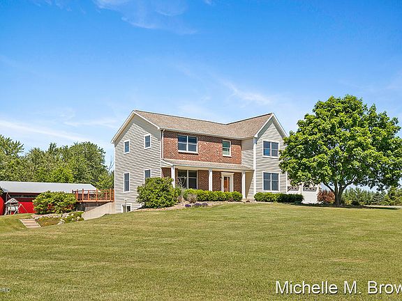 TradIitional Ada home on 10 acres boasts boundless space and exceptional flow. Large 2-story foyer, formal dining room, den, kitchen with granite counters/island with stainless appliances, living room with natural fireplace and main floor laundry. Retreat upstairs to the luxurious master bedroom w/ ensuite & whirlpool tub, 3 additional bedrooms with ample storage. Finished basement includes a full kitchen with quartz island, walkouts and room for endless entertaining. Two car attached garage, generous deck and monstrous 40x56 newer pole barn. ONE YEAR HOME WARRANTY INCLUDED IN PURCHASE PRICE!